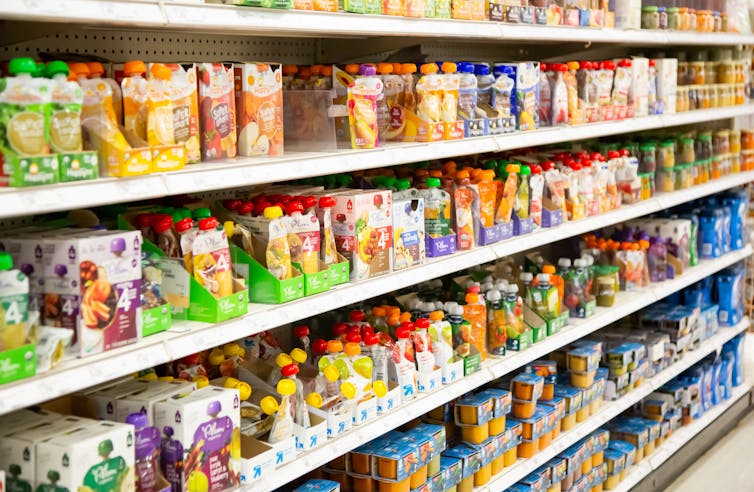 But it’s not just about treats. Commercial infant and toddler foods are a major source of hidden sugars in young children’s diets. These are largely ultra-processed foods that have undergone multiple industrial processes. They contain ingredients such as added sugar, salt, fat as well as additives to make them appealing. Ultra-processed foods often contain ingredients that would not be used if we made a similar product at home.