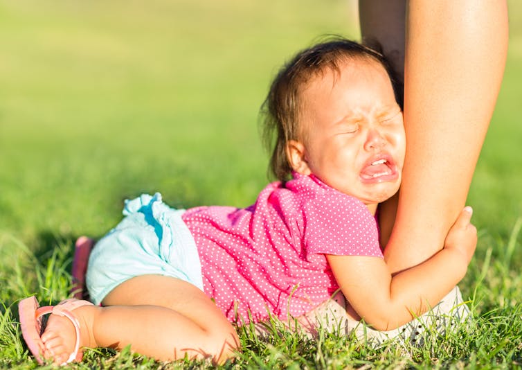 You’re doing daycare or school drop-off, you’re already late for work, and your child’s lip starts to quiver. A tremble turns into a wail, a wail into heart-rending cries as they clutch at your leg.