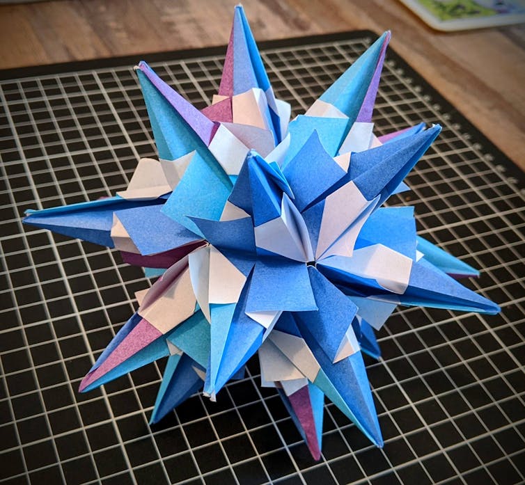 As a geometer (mathematician who studies geometry), my favourite technique is modular origami. That’s where you use several pieces of folded paper as “building blocks” to create a larger, often symmetrical structure.