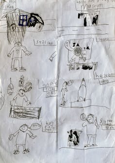 Children use drawing to make sense of the world around them. When my son was five, he made a comic about a gallery experience: how he didn’t want to go, how he felt about some of the artworks, and how he was relieved to get out because he was scared by some of the work.