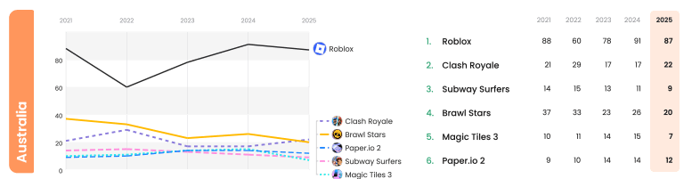 While TikTok dominated social media, Australian children were also spending significant time gaming — particularly on Roblox.