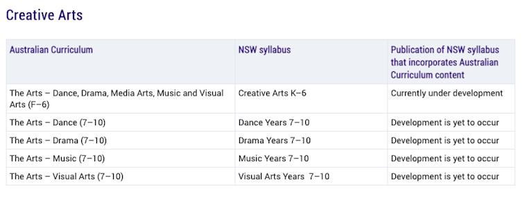 Adding further complexity, some states have not yet updated some subjects (such as languages in Western Australia or the creative arts in NSW) to align with the Australian Curriculum.